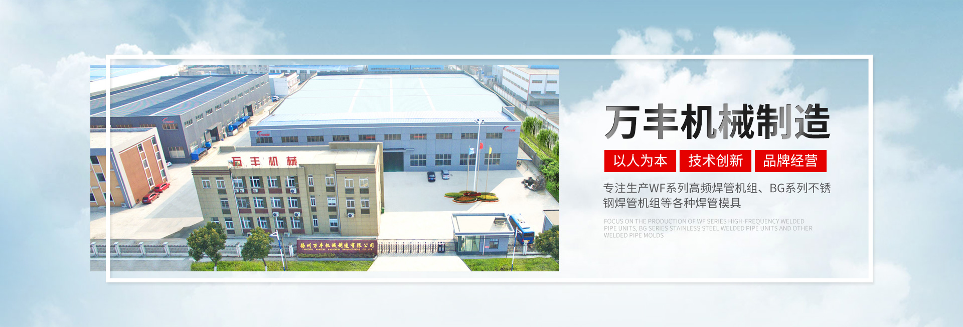 揚州萬豐機械制造有限公司坐落于揚州北郊槐泗工業園區,占地25000平方米,交通便利,是集開發、制造、銷售為一 體的焊管機組、模具制造企業。主要生產WF系列高頻焊管機組;BG系列不銹鋼焊管機組;GW系列型材冷彎成型機組;CQ系列車圈機以及各種焊管模具(12機組至508機組)型材模具。采用ISO9001: 2000國際質量標準,擁有完善的質量保證體系、嚴格的管理制度、先進的檢測手段和完善的售后服務隊伍。公司秉承“以人為本、技術創新、品牌經營、追求品質”的發展理念。堅持質量立企和品牌興企的發展戰略與時俱 進,將人才和先進的管理、完善的設計與服務相結合。不斷開發與創新使我們的產品始終處于同行前列地位,同時也得到國內了外廣大用戶的信賴和盛贊。 成功始于誠信,實力鑄就品牌,服務創造未來。二十一世紀是科技經濟高速發展的時代。競爭與發展并存,機遇與挑戰同在。萬豐人將以“忠誠、務實、拼搏、創新”為企業精神,以敏銳的目光昂揚的姿勢面向一個更加廣闊的市場和未來。